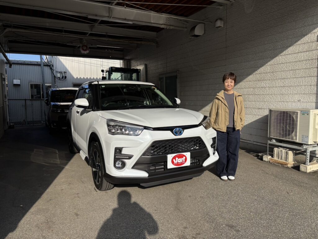 普段使いからレジャーまで使える、楽しめる、「ライズ」。取り回しのよいコンパクトな5ナンバーサイズのSUVながら、広い室内空間と大容量のラゲージに加え、最上級Zグレードに標準装備の大型17インチタイヤと張り出したフェンダーにより、SUVらしく堂々と踏ん張り感のあるシルエットが特徴。薄型LEDヘッドランプや右左折時に車両内側から外側へ流れるように点灯するLEDシーケンシャルランプの採用により、先進性を演出した。インテリアは、運転席からの視界の良さに配慮したインストルメントパネルに加え、運転席側に向けて配置された操作パネル類、左手を伸ばした自然な位置に配置したシフトレバーなど、運転に集中できるドライバーズ空間を実現し、随所にメッキ加飾や赤のアクセントカラーを配置することで、上質感と遊び心が演出された、大人気車種をご購入頂きました!