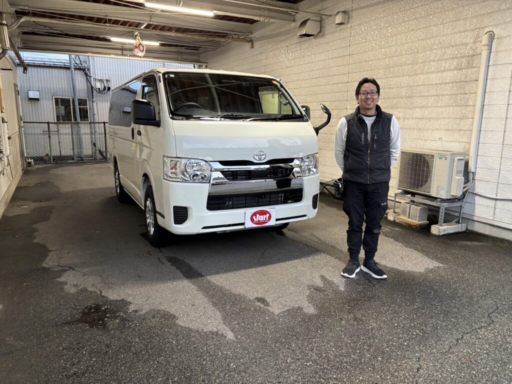 ハイエースはエンジン認証不正の問題が発覚し、2024年1月より受注停止となっていた事もあり、中古車でもお探しさせていただきましたが、なかなかご準備ができず、ハイエースご購入のご相談をいただいてから、約1年3ヵ月後のご納車となり、大変お待たせして申し訳ございませんでした。